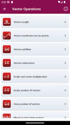 Perform step-by-step calculations with clear, detailed solutions. The app supports matrices up to 5x5 and 2D/3D vectors, with each calculator including a quick theoretical explanation to deepen your understanding.