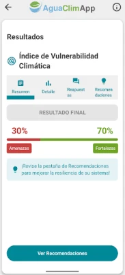 La aplicación es sencilla de usar y te guía paso a paso en todo el proceso de evaluación. Los resultados te proporcionarán una clara visión de las fortalezas y vulnerabilidades de tu sistema, junto con recomendaciones prácticas para mejorar su resiliencia ante amenazas climáticas como sequías, inundaciones y huracanes.