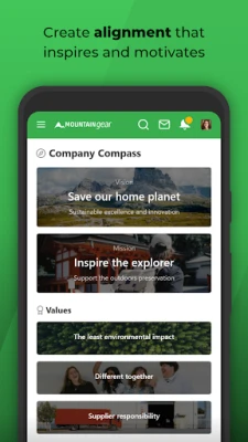 🧭 Amplify the corporate culture and values across the board. Use ahead's Company Compass to communicate your vision, mission, values and goals to a committed workforce.