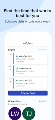- Schedule free video calls and visits every week
