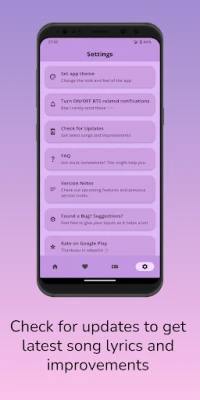 Bangtan Lyricz is completely free, offline, open-source, and ad-free, putting your privacy first. Easily update the app, thanks to Google Play Core. Whether you're new to BTS or a longtime ARMY, it's made just for you.