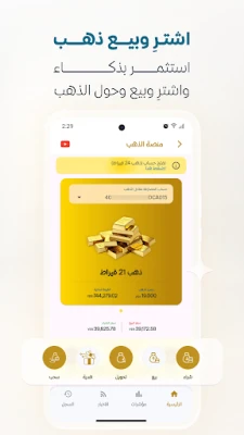 افتح حسابك مجاناً ومكانك "أونلاين" عن بعد، استثمر في الذهب اشترِ وبيع وحل الذهب، حول الأموال لأي حساب في البنك، صارف بين حساباتك، سدد الفواتير، واشحن رصيد هاتفك.