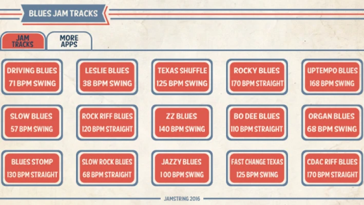 ● 15 professionally recorded blues jam tracks.