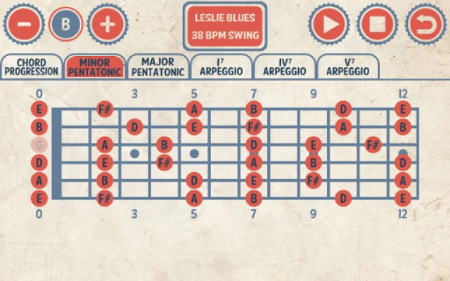 ● Scale diagrams for the pentatonic scales and arpeggios needed to jam along with your guitar.