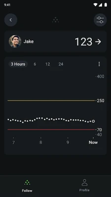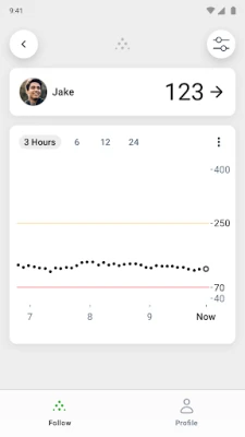 Dexcom Follow works seamlessly with your loved one’s Dexcom CGM, giving you visibility into their glucose data, even when they’re far away. Dexcom Follow allows you to view and follow their glucose levels, trends and data right from the app. Whether your child is in school, your parent lives independently, or your partner is traveling, Dexcom Follow helps you stay connected and informed.