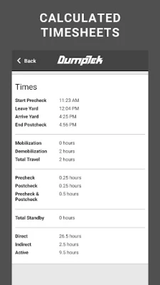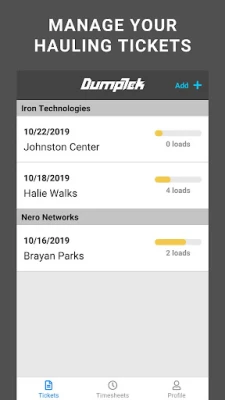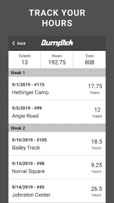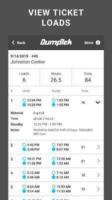 Digital Ticketing app for Construction Materials Transport Trucking Companies for an owner operator or a company with a massive fleet. DumpTek converts data from the field to your invoicing, payroll, and maintenance systems. The application is easy to use while mounted on the cab of the truck. You simply click a button for in and out at load sites and dump sites along with other simple interactions and DumpTek does the rest. The end results are PDF tickets that are familiar to the industry. Your customers will thank you and you will be the first on their list for the next job!