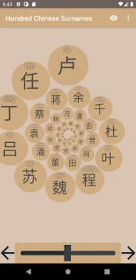 1. Drag the slider left and right to scroll through the spiral of names. 2. Rotate the spiral directly with your finger. 3. Search for a specific surname using the menu. 4. Tap on a surname to learn more about its history, its pronunciation, and famous people with that name.