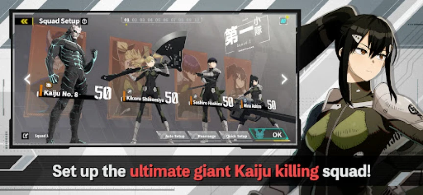 Feel the raw power of KAIJU NO. 8's signature punch, the razor-sharp precision of Soshiro Hoshina's blades, and the earth-shattering power of Kikoru Shinomiya's ax! All brought to life with stunning, high-end graphics!