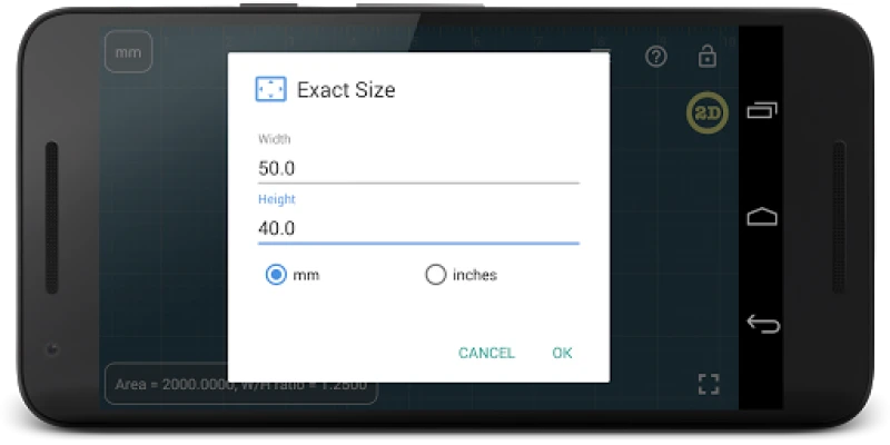 Units: millimeter (mm), inch (in). Fractions are supported for inch units.