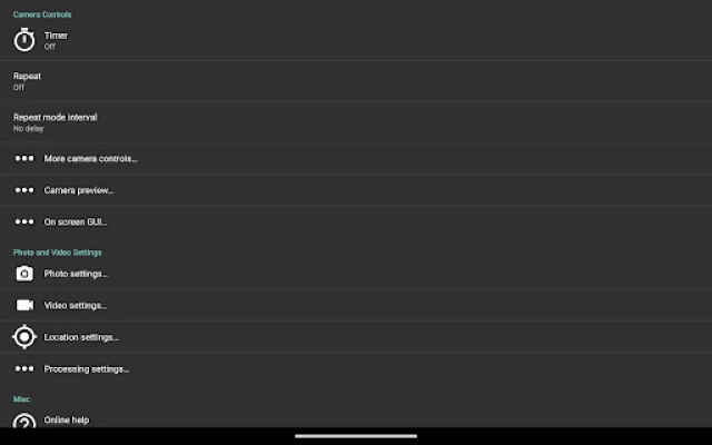 * Support for Camera2 API: manual controls (with optional focus assist); burst mode; RAW (DNG) files; camera vendor extensions; slow motion video; log profile video.