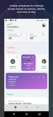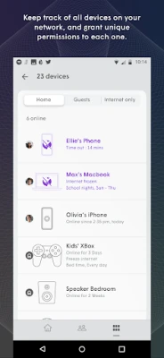 - Guard: Real-time online protection from the seven most common types of malicious threats, hackers, and cyber-criminals. - Adapt: Run speed tests, see signal strength by device, who’s connected to your network, and which devices are most active. - Control: Intuitive tools for managing users, devices, parental controls, network access, and sharing network usernames and passwords. - Sense: Turn connected devices into a camera-free, home-monitoring system.