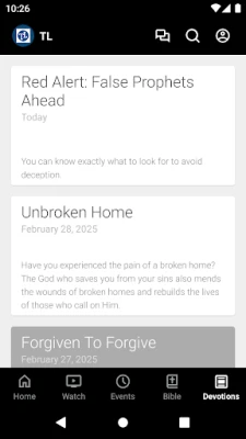 - Watch or listen to past messages - Follow along with our Bible reading plan - Learn more about events, trips, and tours - Read our daily devotion blog posts - Stay up to date with push notifications - Share your favorite messages via Twitter, Facebook, or email - Download messages for offline listening