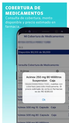 Consulta de cobertura, monto disponible y precio estimado en farmacia.