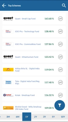 7. One Day Change- Check how your Schemes performed yesterday.