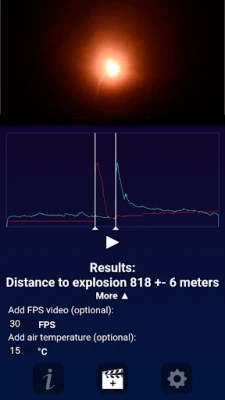 The app calculates the difference between the time when the sound of the explosion starts and the time when the flash occurs, and then multiplies that value by the speed of sound.